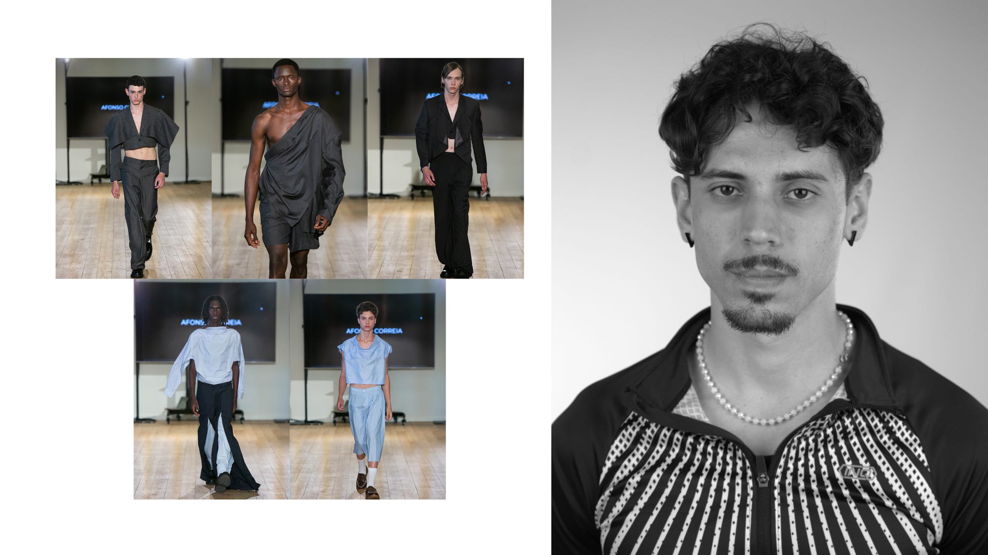 O fascínio por blazers, o desejo de trazer para moldes tradicionais, como os do menswear e da própria alfaiataria uma nova perspetiva, uma nova abordagem - uma abordagem sua, da sua idiossincrasia, a motivação de dar continuidade ao seu corpo do trabalho da licenciatura em Belas Artes com foco em pintura foram os componentes que costuraram o ponto de partida do início de Afonso como designer de moda.
