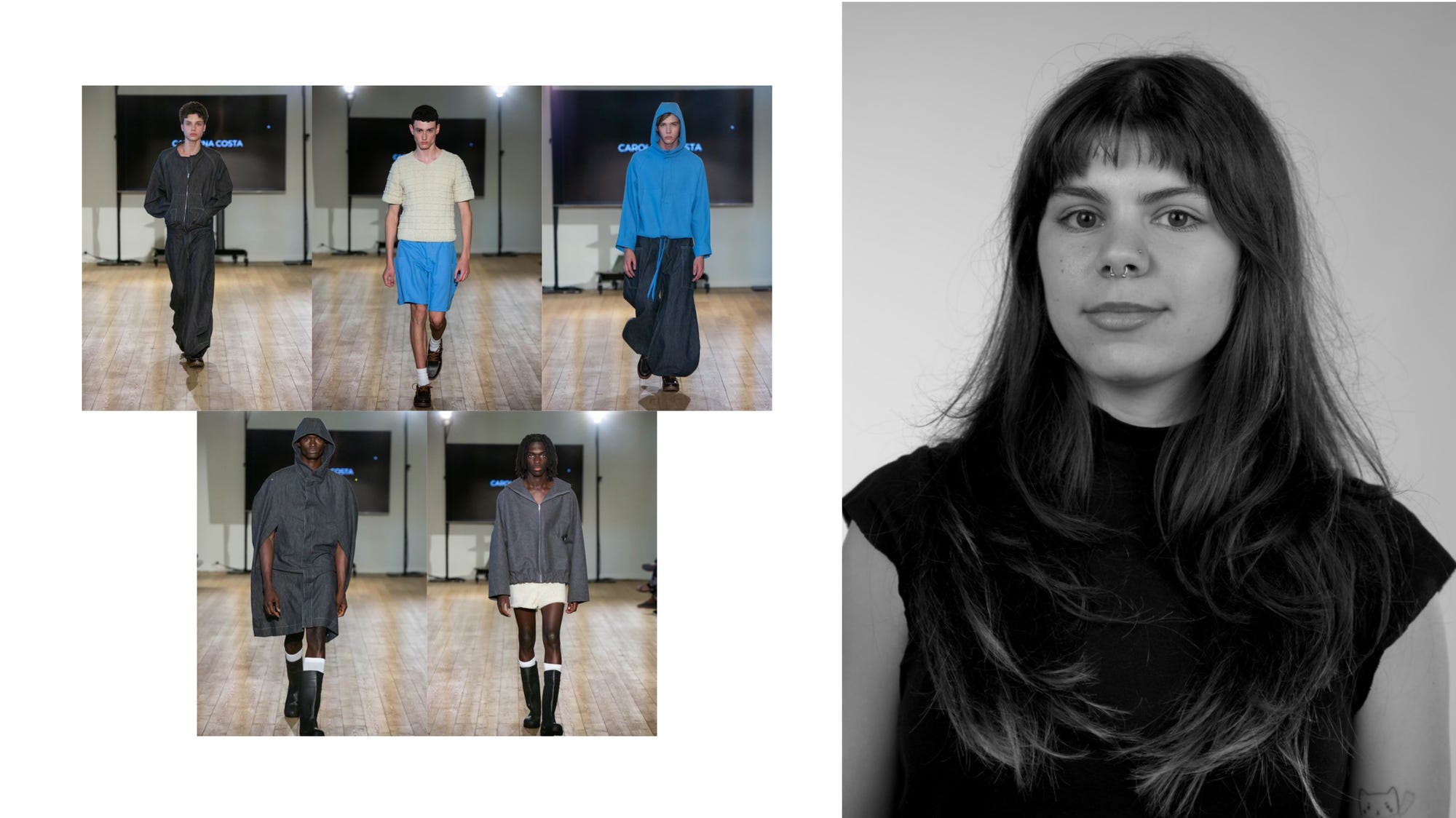 Agora tem a leveza de ver este momento com algum sentido de humor. Agora depois de ter concluído a sua coleção, na qual se inspirava no trabalho dos designers Martin Margiela e Miguel Adrover. Coleção que explora a desconstrução aplicada a roupa masculina formal e à alfaiataria.
