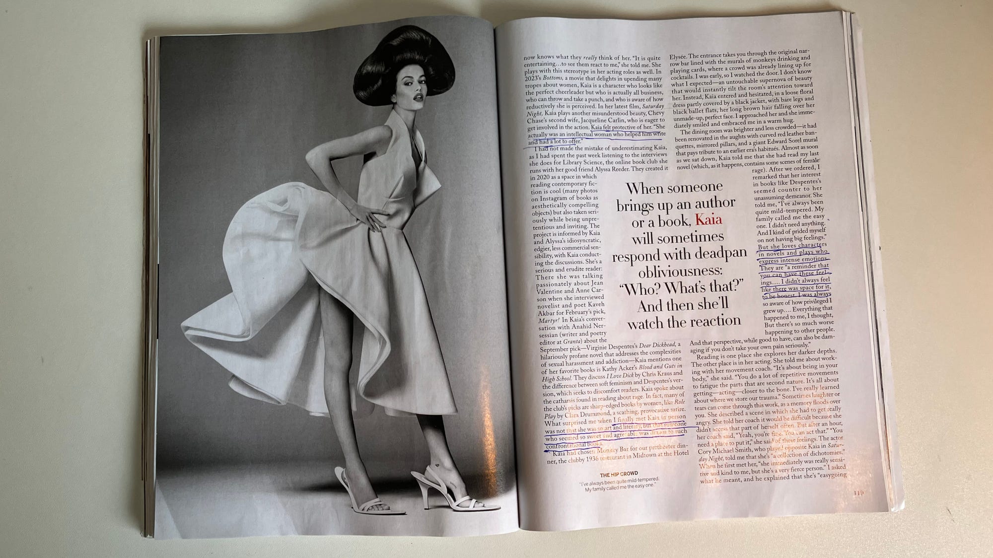 O que espero encontrar para lá do incrível retrato de Kaia Gerber, ou seja para lá da capa?Talvez um road map, talvez a possibilidade de extrair uma lista de semelhança entre o design de Moda em si e a edição ou coordenação da edição que Marc Jacobs fez desta Vogue.