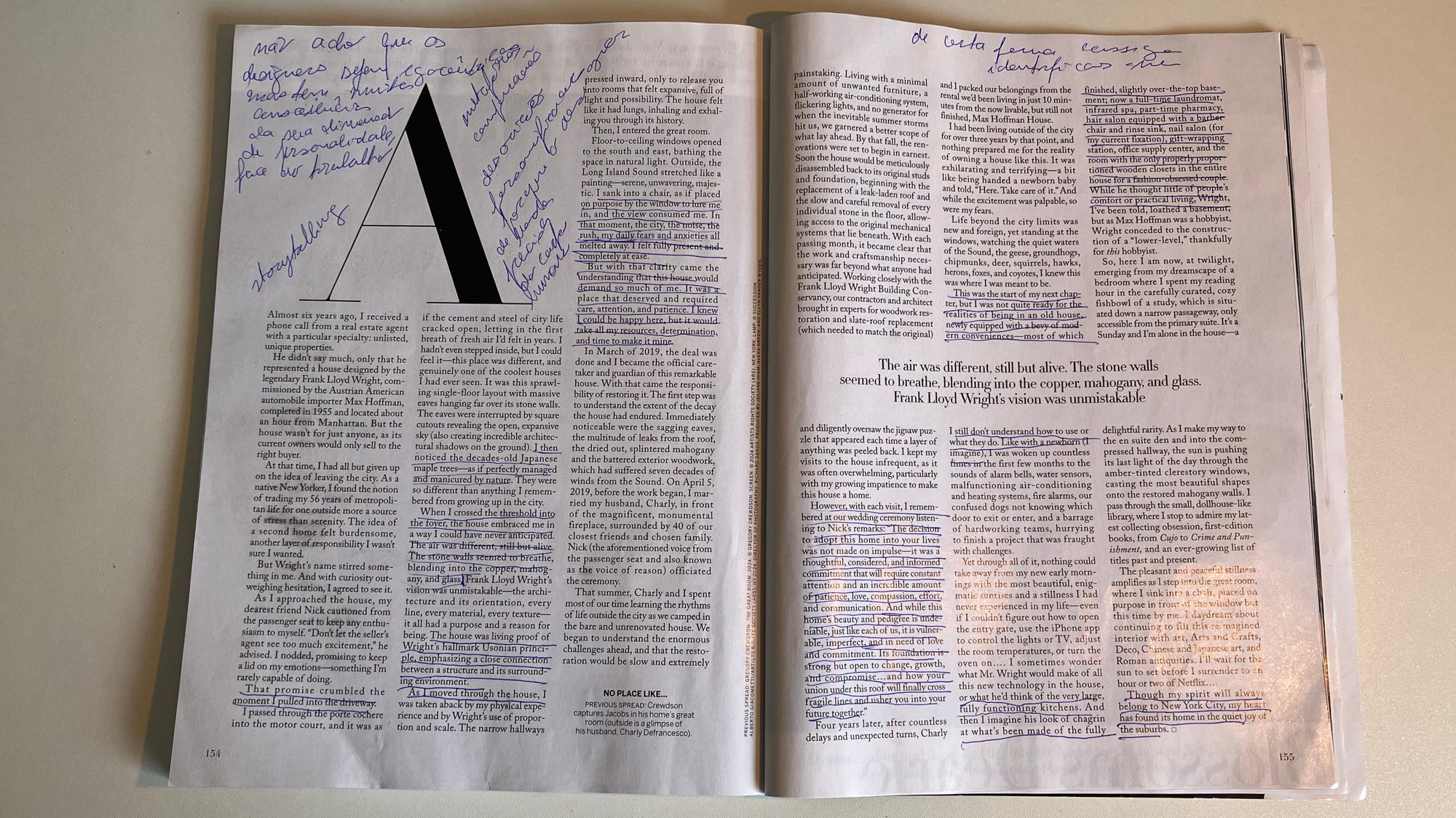 Quando Marc Jacobs fala, na primeira pessoa, da experiência de tornar uma casa desenhada por Frank Llyond Wright no seu doce lar traz à tona conclusões menos tangíveis. Os designers de Moda são de tal maneira reflexivos, que podem aparentar ser narcisistas, na verdade penso que se trata de uma enorme capacidade de sermos conscientes do próprio ser e de como esse ser de personalidade se espelha no trabalho desenvolvido.
