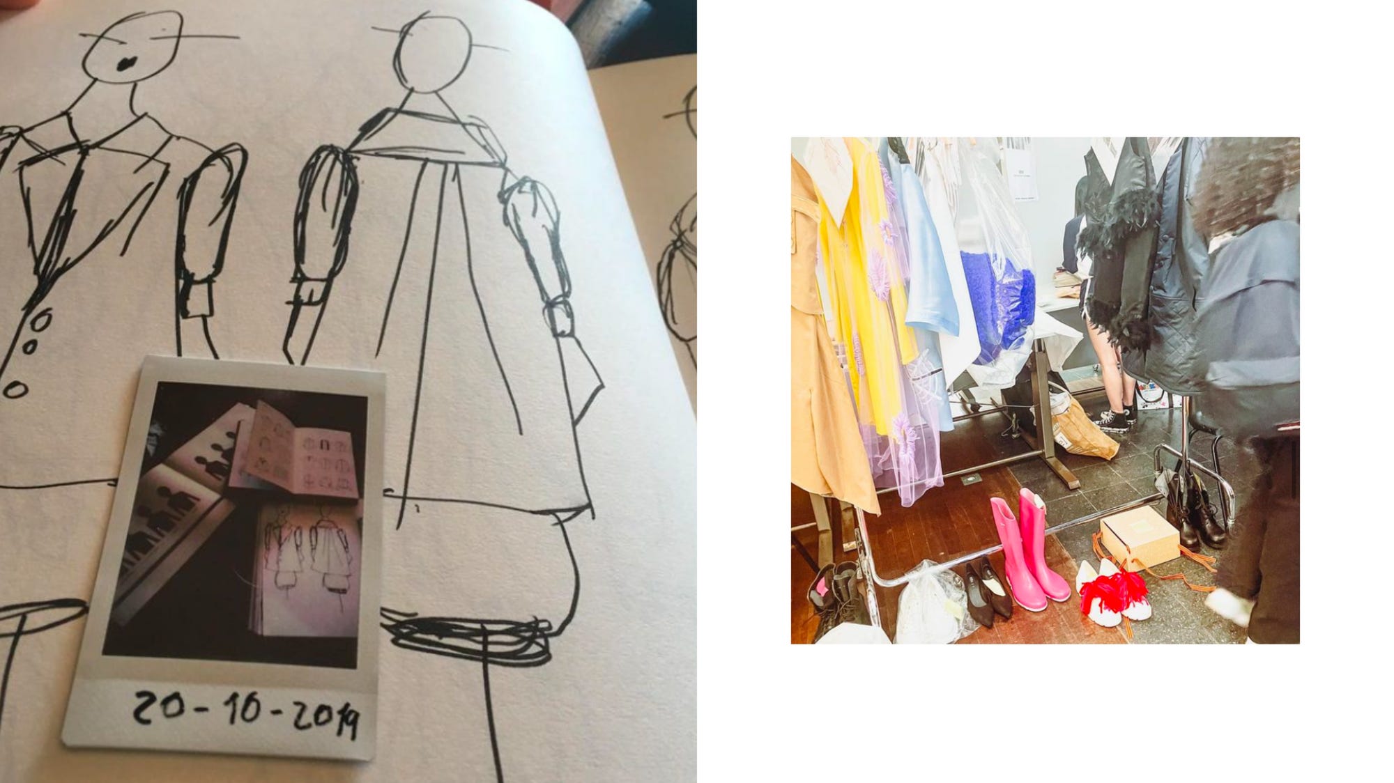 Esboçar é uma forma do cérebro dialogar com o exterior, sendo temos cerca de 60 000 pensamentos por dia, sempre me foquei em não deixar as ideias voarem para longe de mim. Ser desafiada para fazer 200 esboços de camisas, que aconteceu, não me assustou. Sempre desenhei rápido, também é verdade até eu, nem sempre compreendia o registo das minhas ideias. Contudo, este nunca foi um alto preço a pagar por manter o imposter syndrome o mais longe possível, trabalhando com relativa rapidez e com canetas ou marcadores para não se poder apagar, se mais tarde questionasse a validade da ideia, era uma metodologia eficiente.